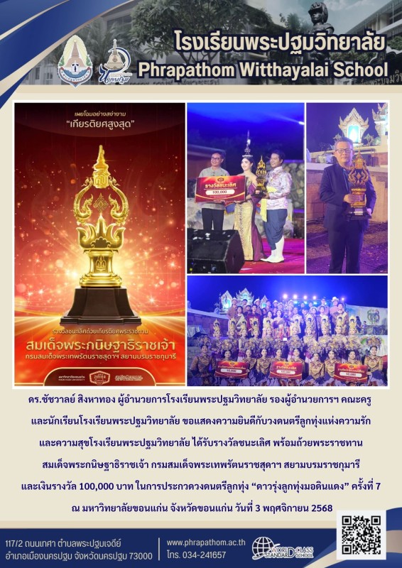 3 พ.ย.68 การประกวดวงดนตรีลูกทุ่ง "ดาวรุ่งลูกทุ่งมอดินแดง" ครั้งที่ 7 ได้รับรางวัลชนะเลิศ พร้อมถ้วยพระราชทาน ณ มหาวิทยาลัยขอนแก่น