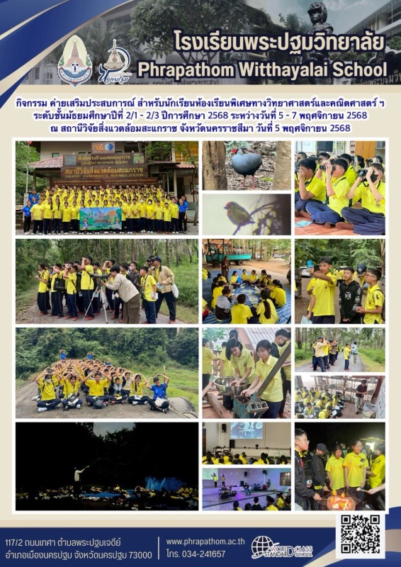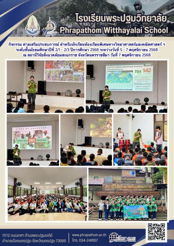 5-7 พ.ย 68 กิจกรรมค่ายเสริมประสบการณ์ สำหรับนักเรียนห้องเรียนพิเศษฯ ชั้น ม.2 ณ สถานีวิจัยสิ่งแวดล้อมสะแกราช จ.นครราชสีมา
