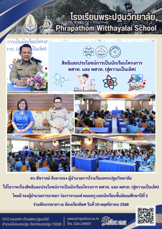 10 พ.ย. 68 กิจกรรมฟังบรรยาย เรื่องสิทธิและประโยชน์การเป็นนักเรียนโครงการ พสวท. และ สสวท. (สู่ความเป็นเลิศ))