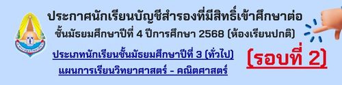 ประกาศผู้ได้รับการคัดเลือกประกันภัยอุบัติเหตุนักเรียน ประจำปีการศึกษา 2569 17 มี.ค. 69