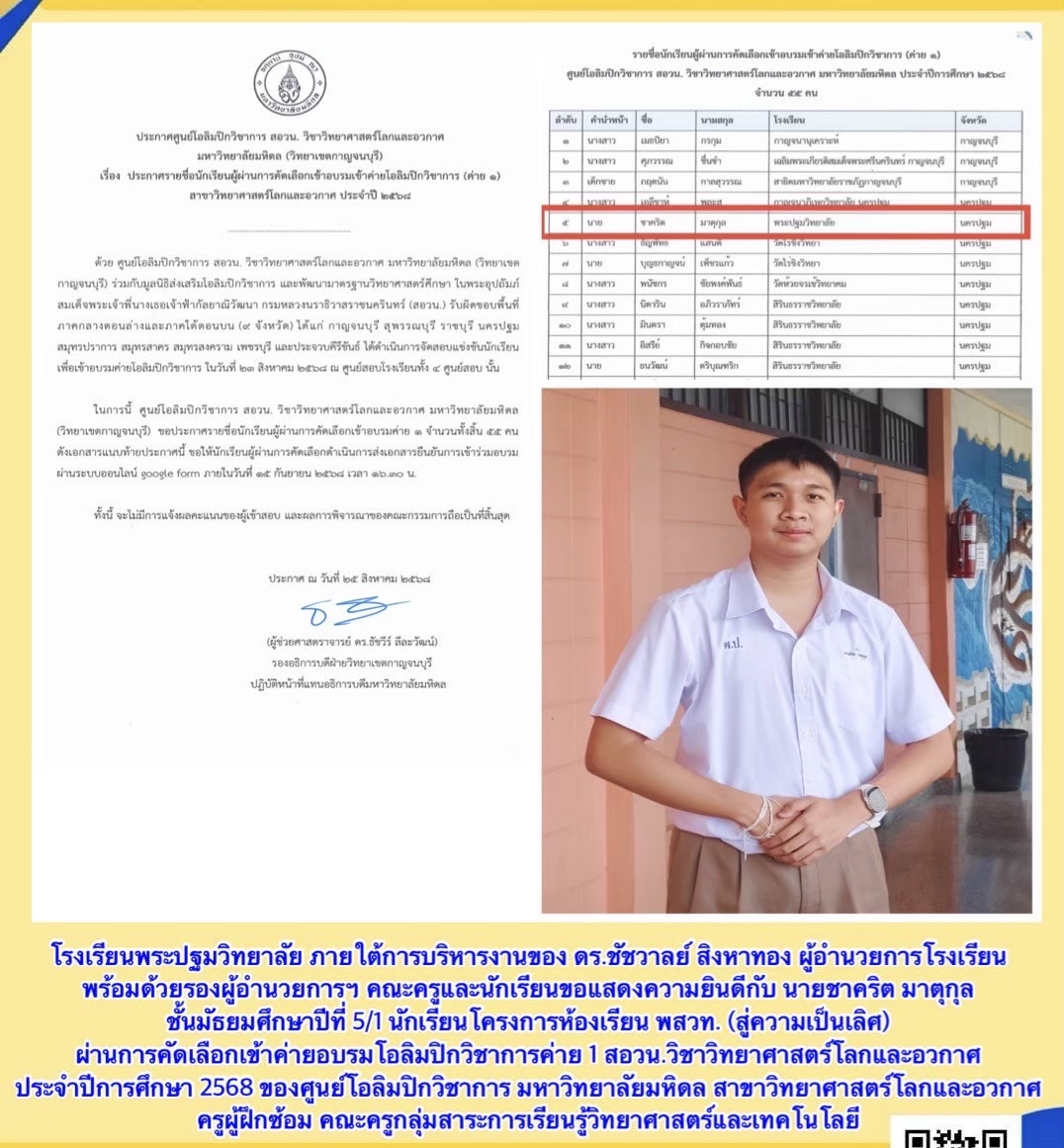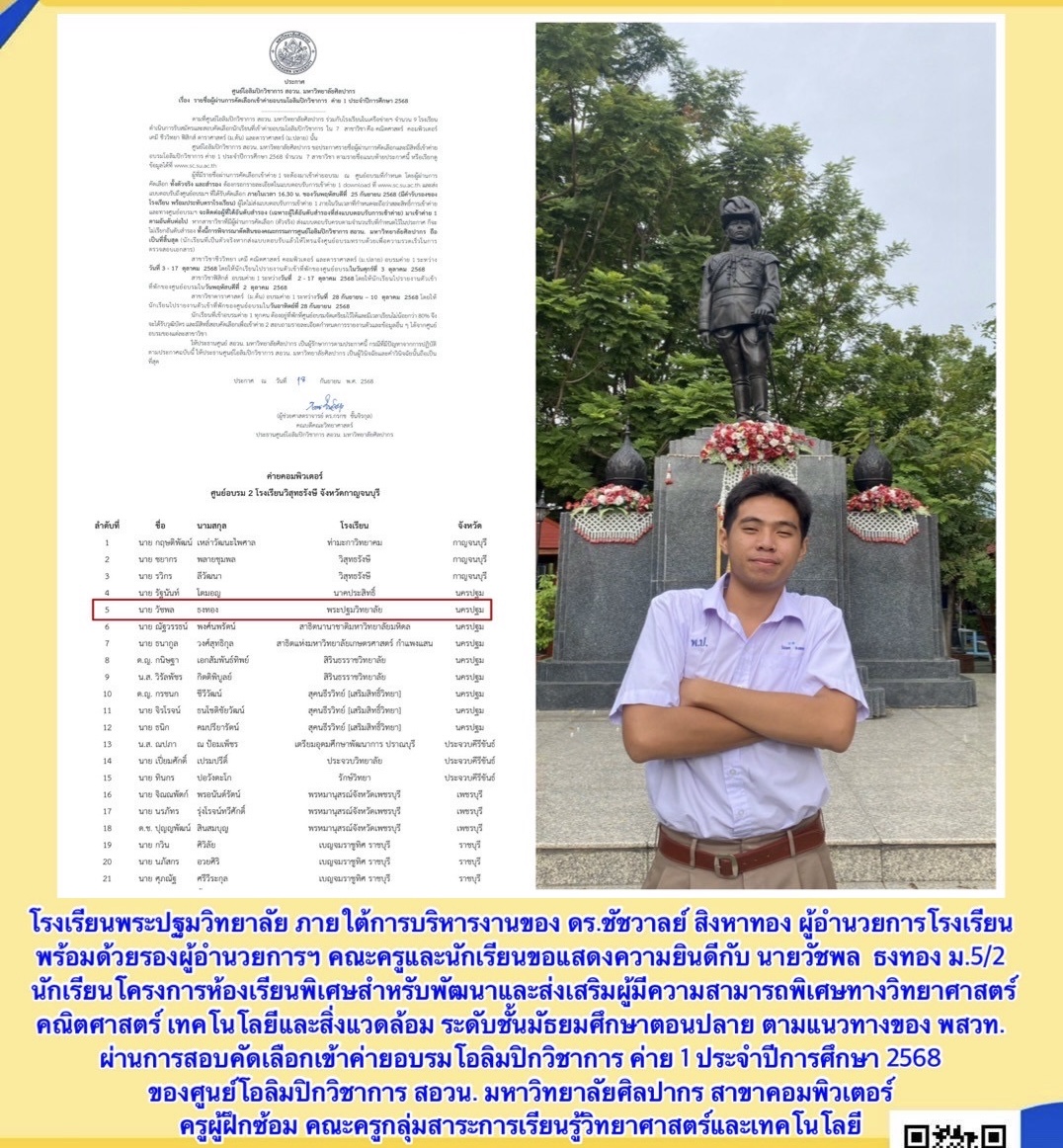 ประกาศโรงเรียนพระปฐมวิทยาลัย เรื่อง ผู้ชนะการประมูลราคาร้านค้าการจำหน่ายอาหารในโรงอาหารโรงเรียนพระปฐมวิทยาลัย ประจำปีการศึกษา 2568 (รอบ 2) 18 เม.ย. 68