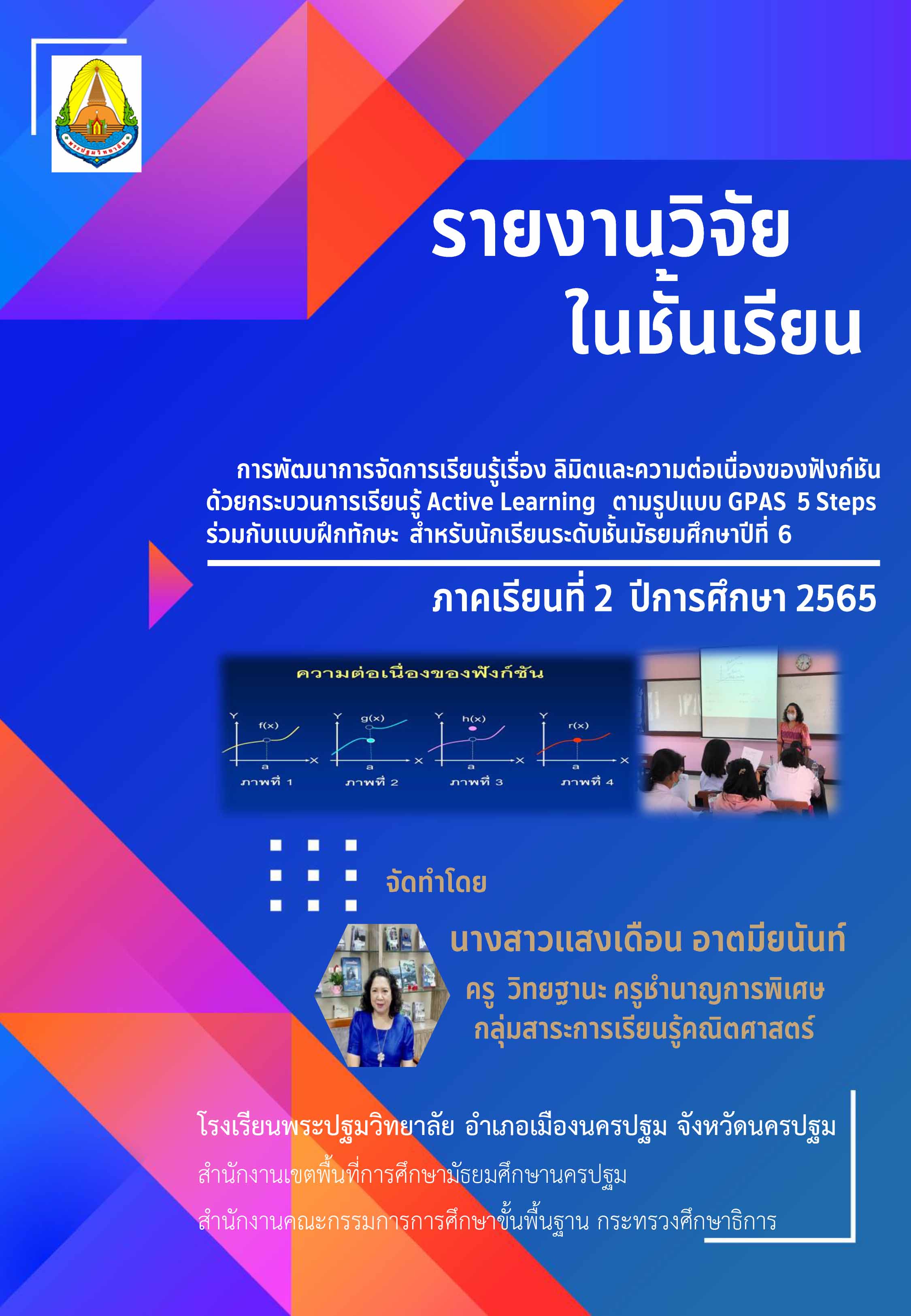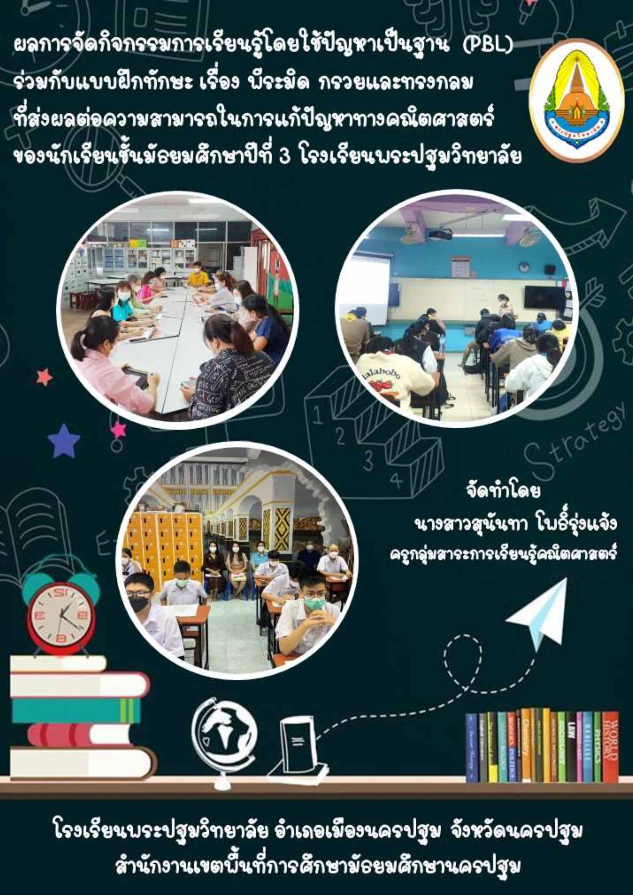 ผลการจัดกิจกรรมการเรียนรู้โดยใช้ปัญหาเป็นฐาน (PBL) ร่วมกับแบบฝึกทักษะในรายวิชาคณิตศาสตร์ 6 ค23102 เรื่อง พีระมิด กรวยและทรงกลม ที่ส่งผลต่อความสามารถในการแก้ปัญหาทางคณิตศาสตร์ ของนักเรียน ชั้นมัธยมศึกษาปีที่ 3 โรงเรียนพระปฐมวิทยาลัย |